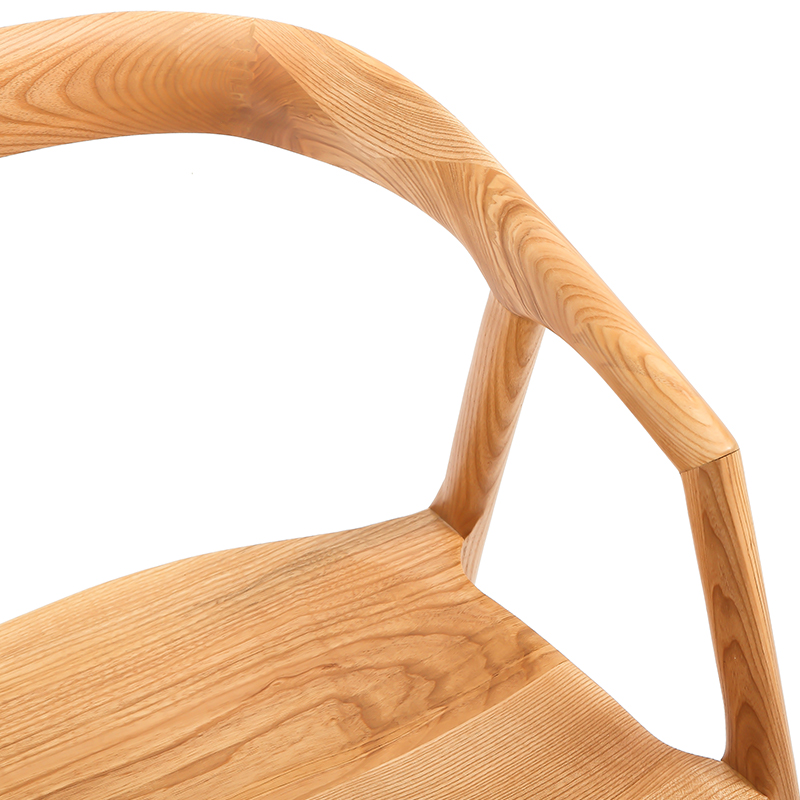 Fabricada con madera maciza de alta calidad, la silla es resistente y duradera y al mismo tiempo se adhiere a principios ecológicos. Su construcción ligera pero robusta hace que sea fácil de mover, adecuado para su uso en hogares, oficinas o espacios de ocio. Las líneas limpias y suaves del diseño combinan una estética moderna con una sensación natural, adaptándose sin esfuerzo a varios estilos de interiores.