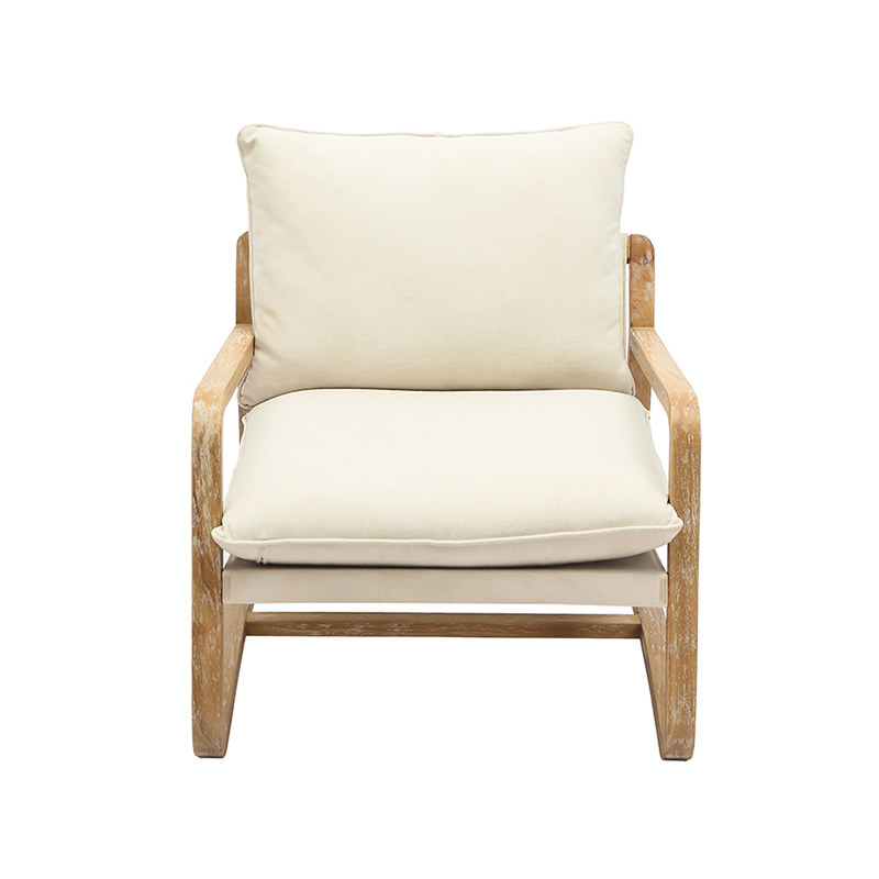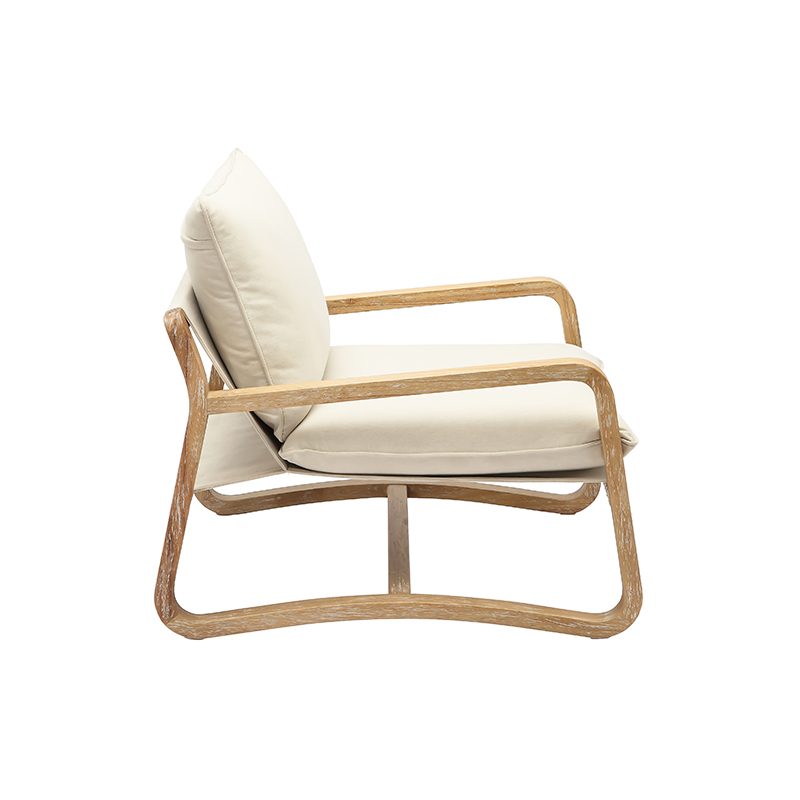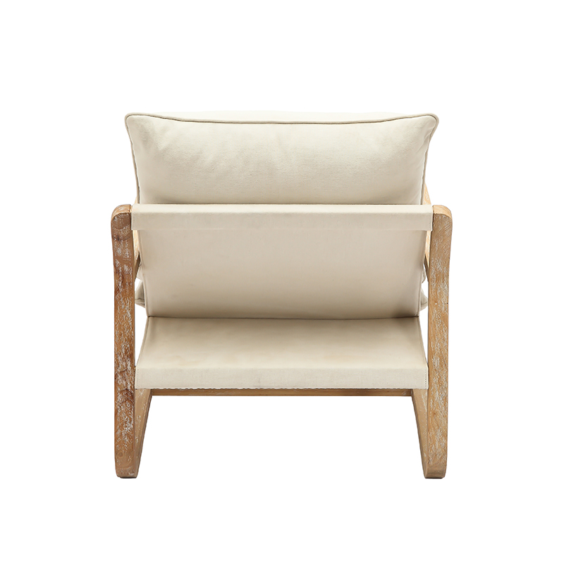 El asiento generosamente acolchado y el respaldo suavemente curvado brindan un excelente soporte manteniendo una silueta refinada. La almohada blanquecina a juego añade un sutil contraste de textura y tono, mejorando tanto el atractivo visual como la sensación acogedora.